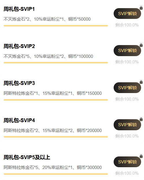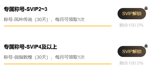 除了基础的盒子礼包,SVIP会员每周还可领取对应等级的专属礼包,周周补给,助你战力持续飙升。 当你等级达到SVIP2及SVIP4时,还能解锁专属游戏称号(仅可领取当前SVIP等级段对应的称号)!称号为月度领取,持续时间为30天。 勇士的诞辰我们可都是记着的!在每年生日的自然月来盒子领取SVIP对应等级的生日礼包!这是专属于你的生日惊喜! 注:不同礼包领取条件有所不同,各位勇士可点击对应礼包查看详情。SVIP专属福利